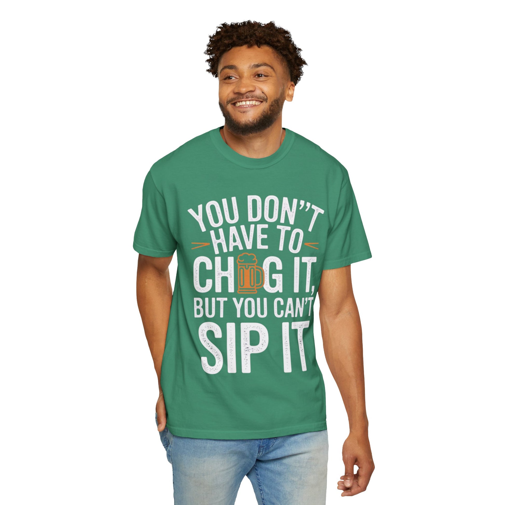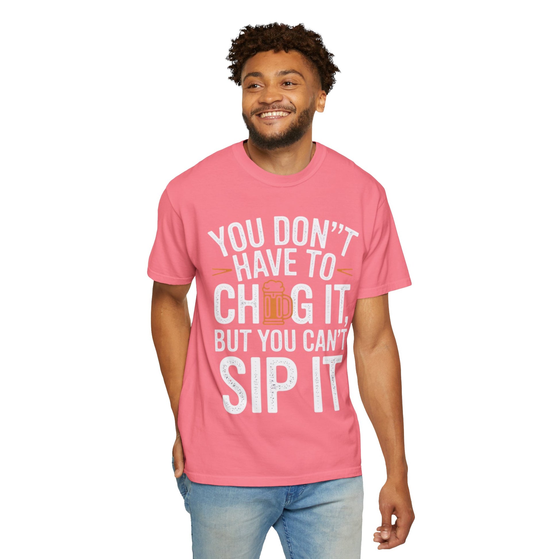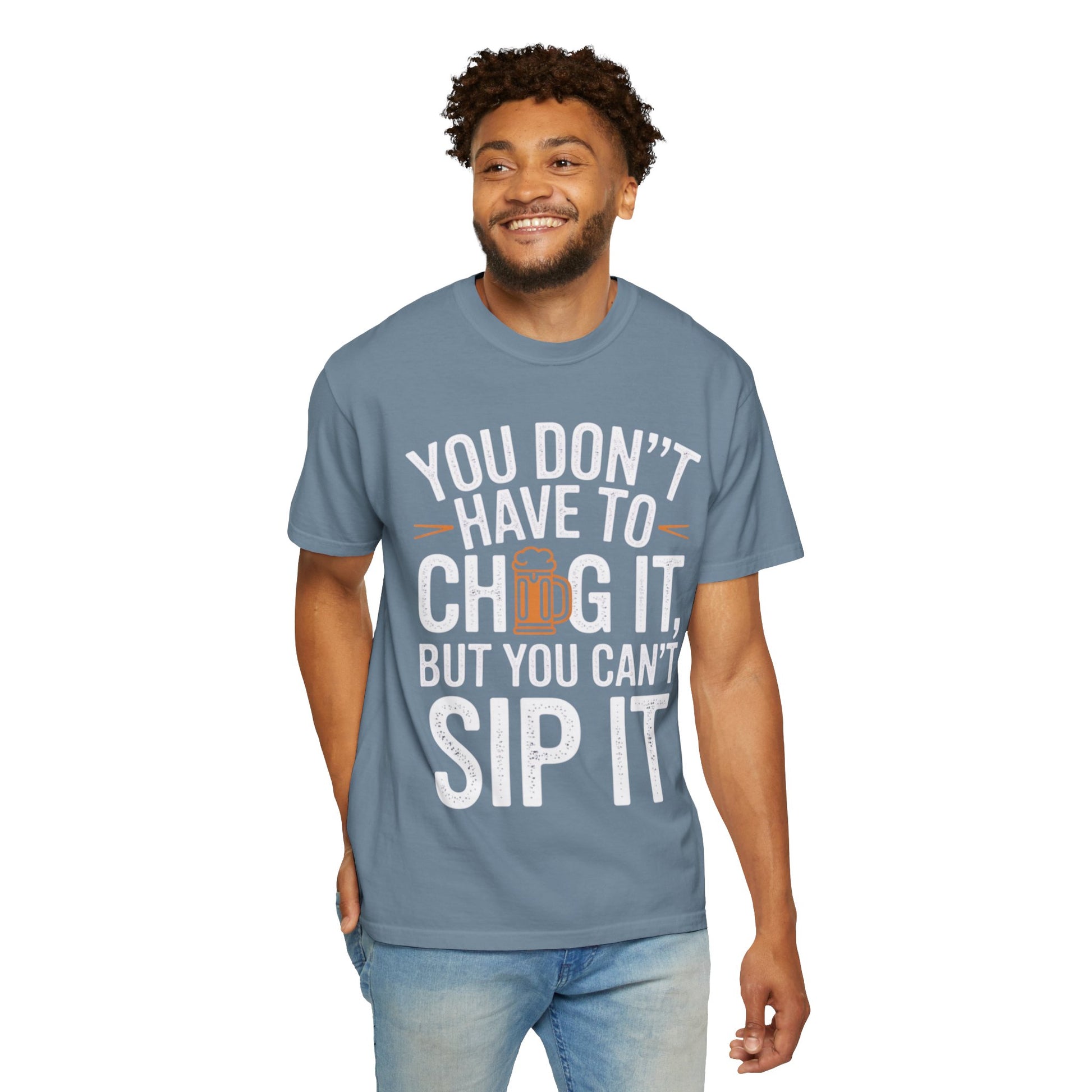 Funny Beer T-Shirt — "You Don't Have to Chug It, But You Can't Sip It" Graphic Tee