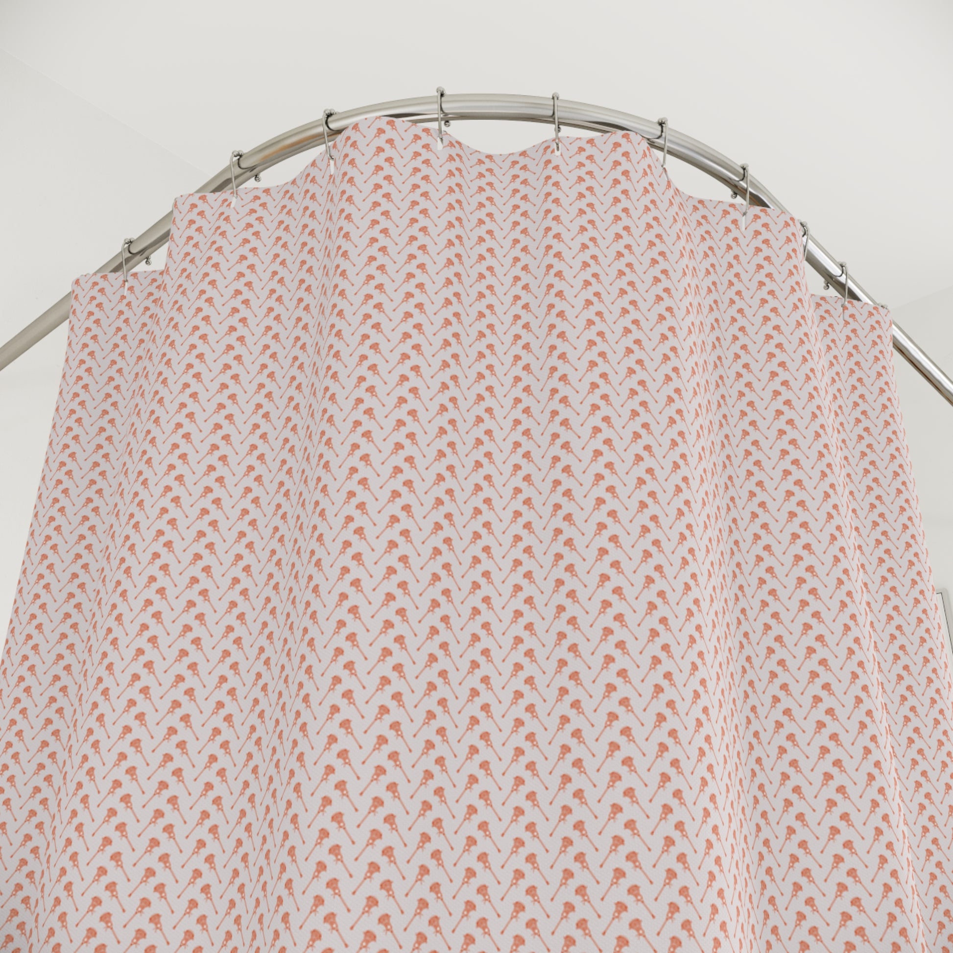 A shower curtain with a simple textile pattern featuring lacrosse sticks. Perfect for sports enthusiasts and athletes, adding a touch of athletic flair to your bathroom decor. Ideal for lacrosse fans and players, great for birthdays or holidays celebrating sports.